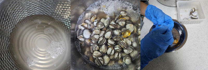 첫 번째, 물이 끓으려고 기포가 보글보글 올라올 때 꼬막을 삶는 법과