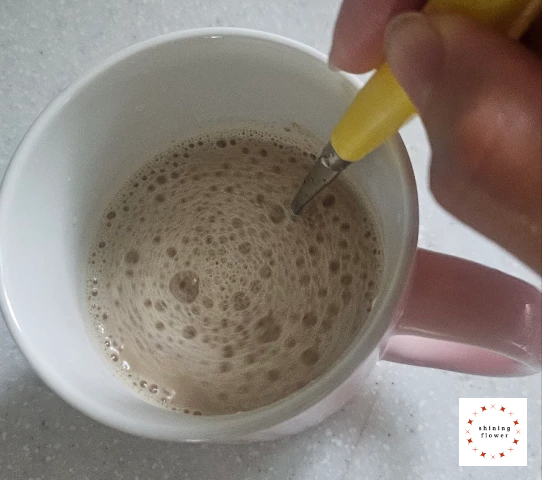 처음에 설명서를 보지 않고 찬물에 부었다가 녹지 않아서 다시 뜨거운 물을 부었는데 분유 때문에 역시나 잘 안 녹더라고요. 그래서 뒤에 뜨거운 물을 부었음에도 덩어리가 다 녹지 않아서 결국 덩어리와 함께 마신 건 안 비밀입니다.^^;;
