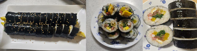 2. 김밥 쌀 때 마지막에 김에 물을 묻히는 분이 있는데 김밥을 말고 나서 마무리 부분을 바닥으로 가게 하면 밥의 수분 때문에 저절로 김끼리 붙으므로 물칠을 안 해도 된다.